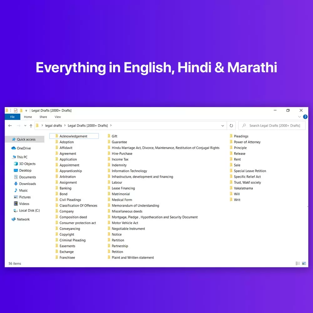 This bundle gives you instant access to a professionally created library of 2000+ legal drafts, covering almost every legal requirement.