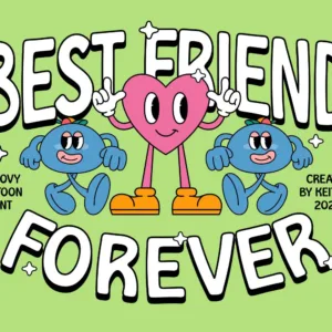 Introducing Groovy Cartoon Display Font – the perfect balance between playful and professional. This font is a versatile choice for a wide range of design projects. With its unique blend of fun and sophistication, it is sure to add a touch of creativity to your creative ideas.
