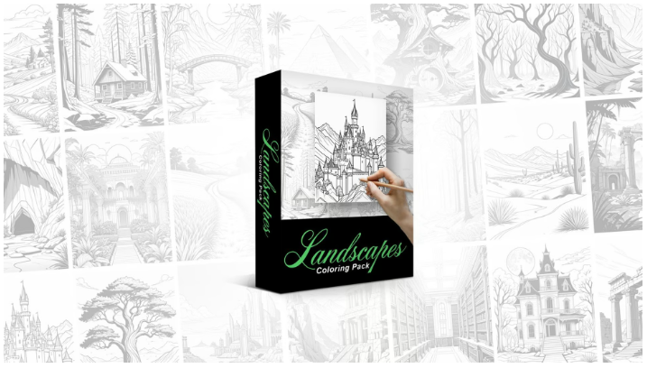 The Landscapes Coloring Pack is a comprehensive collection designed for both personal and commercial use, offering over 500 high-resolution coloring pages of realistic and fantasy landscapes. It includes editable book covers and presentation mockups, all provided with Private Label Rights (PLR) for easy customization and branding. This pack is ideal for creating unique, professional-quality coloring books, making it a valuable asset for anyone looking to diversify their product offerings or simply enjoy creative activities.