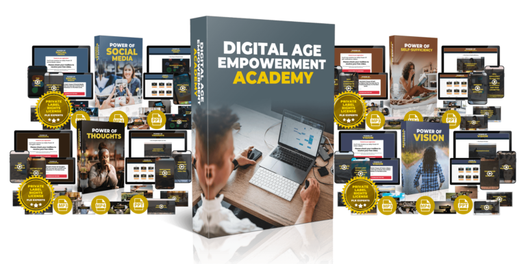 The Digital Age Empowerment Academy is a comprehensive PLR package designed to empower individuals in navigating and succeeding in today’s digital landscape. It includes 84 short, re-brandable videos covering essential topics such as social media mastery, self-sufficiency promotion, powerful mindset cultivation and visionary outlook fostering. With full private label rights, users can customize the content to align with their brand and messaging. Additionally, the package offers a turnkey 80+ video pages website and also various resources to support effective content delivery and engagement.